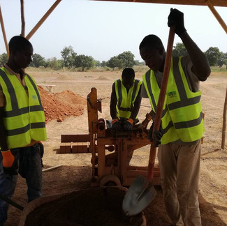 Pour les briques, les 7000 premières seront stabilisées au ciment. La stabilisation permet d'augmenter la résistance du matériau et ainsi de l'utiliser en système porteur. Celle au ciment ne nécessite que un mois de séchage et nous espérons donc pouvoir monter la première classe avec ces briques avant notre retour ! Le reste des briques sera stabilisé à la chaux, où la cure de séchage est là de 3 mois. Vous comprenez donc la décision d'en stabiliser certaines au ciment.
