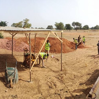 Hier, le béton de propreté des fondations de la première classe a pu être coulé après rectification d'une erreur de niveau qui malheureusement se répercute sur le reste des fondations. Nous devons donc recommencer tout le travail de mise à niveau des fouilles. Mais yellékabé, on est là pour ça ! Notre mooré s'améliore de jour en jour grâce, entre autres, à Omar, notre taxi atitré qui allonge notre liste de vocabulaire tous les matins.